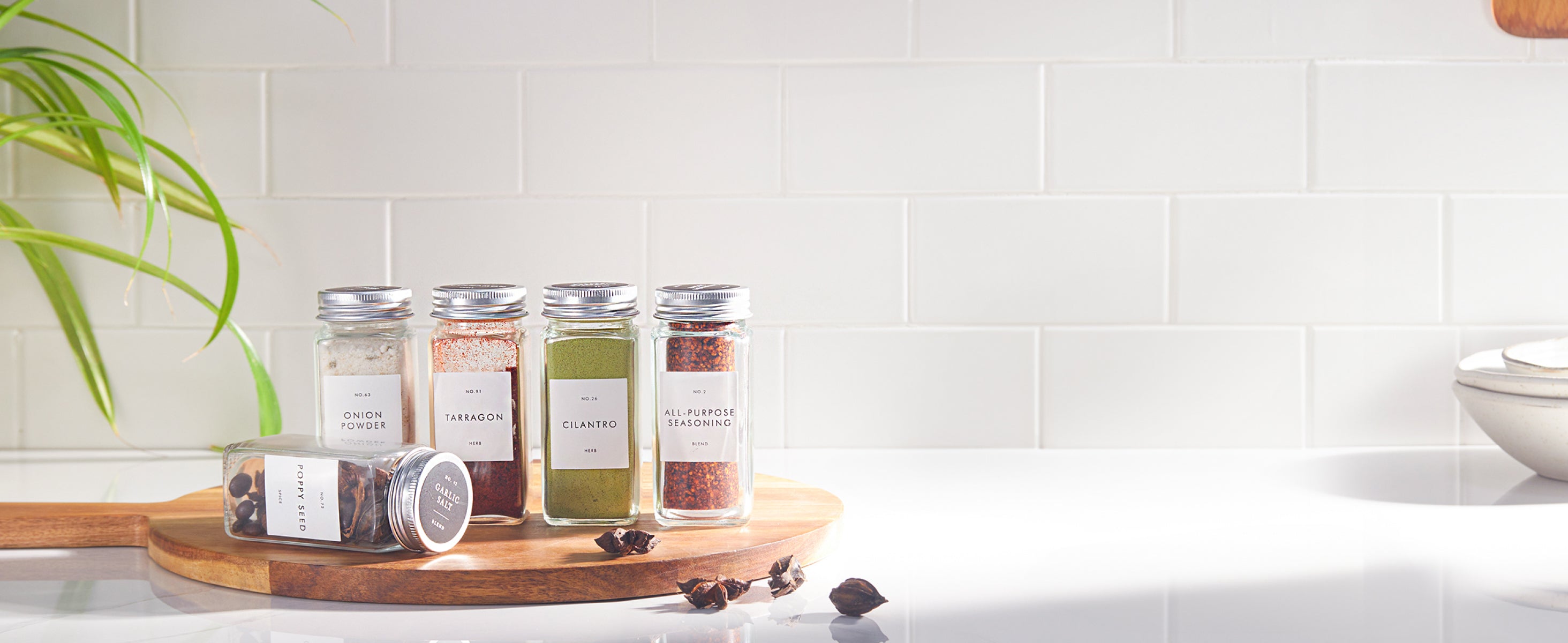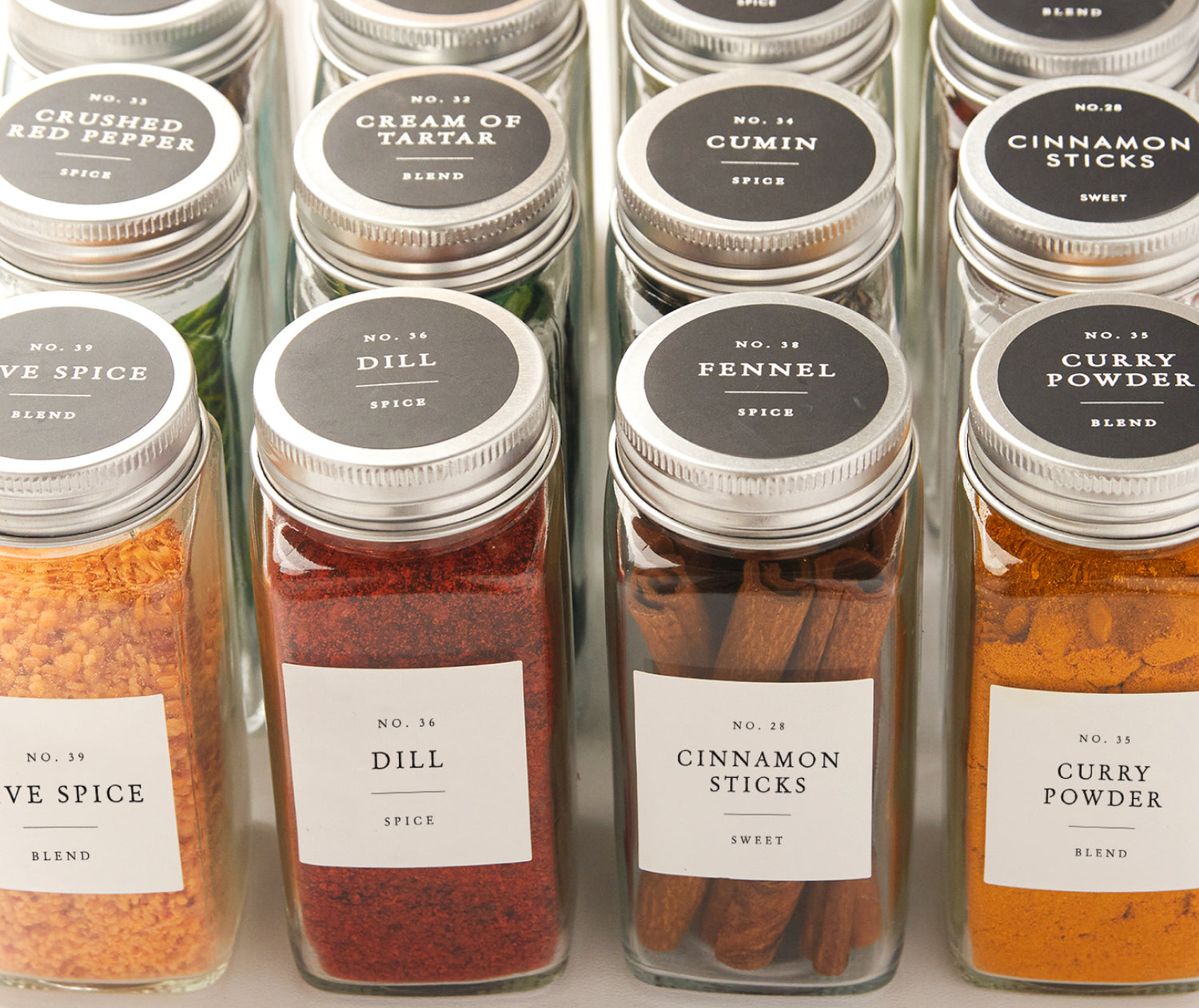 Tired of searching for the spice bottles you want among the mismatched assortment? Our easy-to-read labeling system will make your life in the kitchen much easier. Organize your spice containers and gain extra countertop space today!
