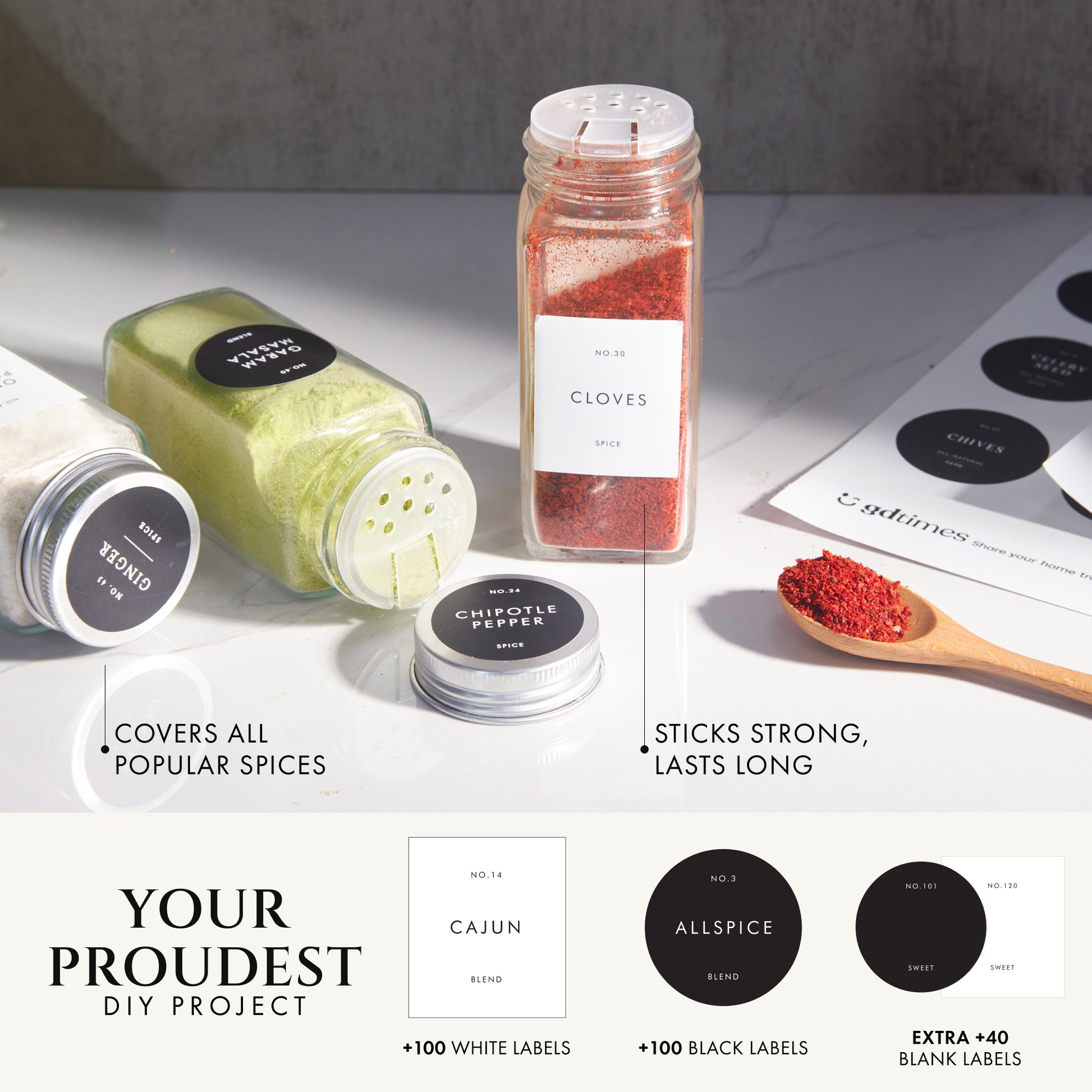 Keep your spices fresh and full of flavor with our Spice Jar Set with Labels. The airtight metal lids preserve the scent and taste, while the clear, thick glass seasoning jars let you see your spices at a glance. With 240 labels, you can easily organize and identify every jar.