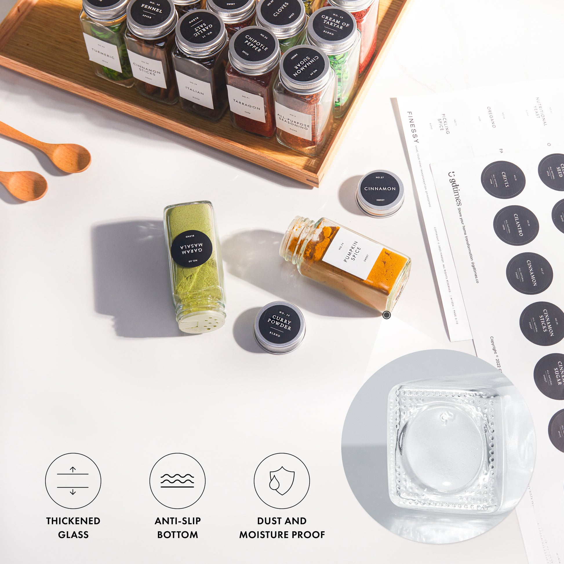 - Dream-Worthy Spice Organization: Includes 24 or 36 sturdy 4oz glass jars with airtight metal lids, 240 waterproof labels in two fonts (pre-printed and blank), and a collapsible silicone funnel for mess-free refills.