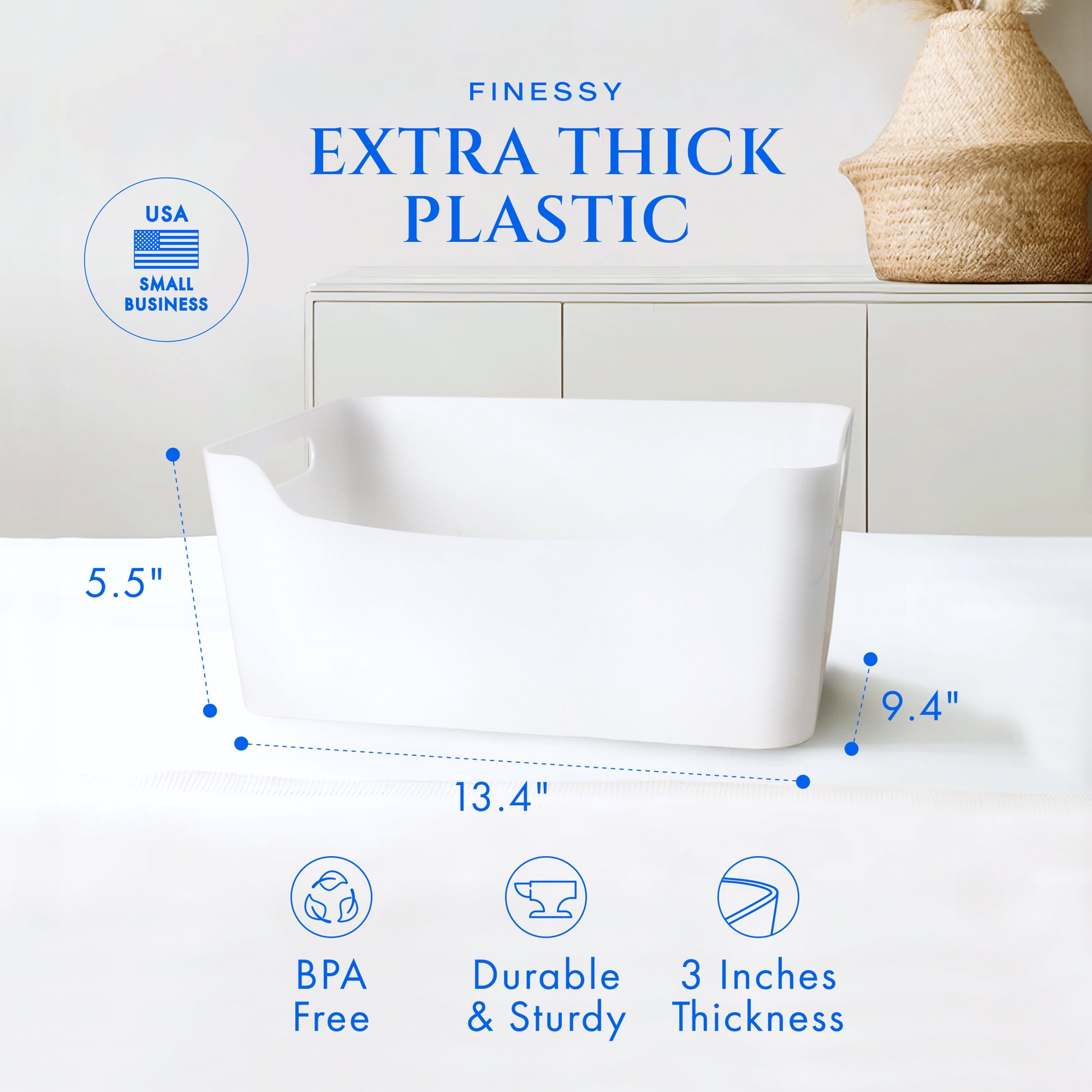 Crafted with high-quality materials, this storage bin ensures durability and style. Its smooth, white finish blends seamlessly with any home or office setting.